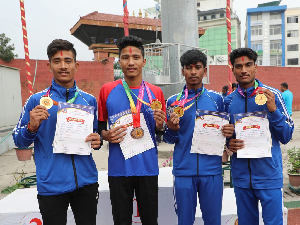 छात्रा ४ गुणा ४ सय मिटर रिलेमा लुम्बिनीले स्वर्ण, सुदूरपश्चिमले रजत तथा कर्णालीले कांस्य पदक जिते । छात्र २ सय मिटर दौडमा लुम्बिनीका सुजल डाँगीले स्वर्ण जिते । उनले निर्धारित दूरी २३.० सेकेन्डमा पूरा गरे । सुजलले योसहित प्रतियोगितामा १ कीर्तिमानीसहित ३ स्वर्ण हात पारे । उनले १ सय मिटर दौडमा पनि स्वर्ण जितेका थिए ।