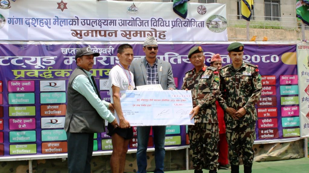 खडकले खप्तडको ३ हजार ३ सय फिट उचाईबाट सुरु म्याराथन २ घण्टा ३७ मिनेट ४६ सेकेन्डमा पार गर्दै उपाधि जितेका हुन् । आर्मीकै नरेन्द्र सिंह रावत दोस्रो भए । उनले निर्धारित दुरी २ घण्टा ३९ मिनेट ३४ सेकेन्डमा पूरा गरे ।