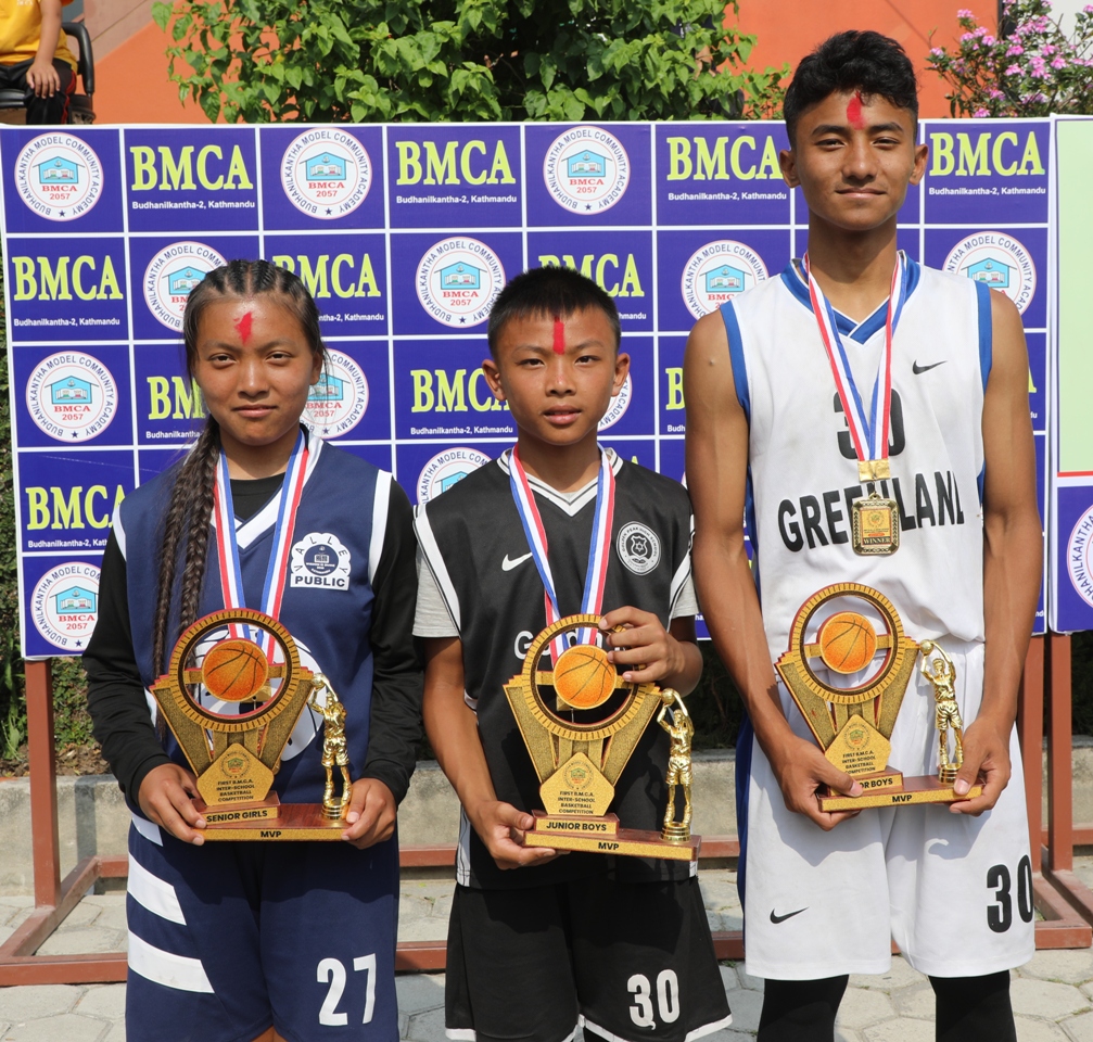 ग्रिनल्यान्ड सिनियर ब्वाइज, भ्याली पब्लिक सिनियर गल्स र गोल्डेनपिक जुनियर ब्वाइजमा च्याम्पियन बनेका हुन् । बूढानीलकण्ठ मोडेल कम्युनिटी एकेडेमी (बीएमसीए) र बूढानीलकण्ठ नगरपालिकाद्वारा संयुक्त आयोजित प्रतियोगिताको शनिबार भएको सिनियर ब्वाइज फाइनलमा ग्रिनल्यान्डले भ्याली पब्लिकलाई ३५–३४ को झीनो अन्तरले पराजित ग¥यो । ग्रिनल्यान्डका प्रवीण गुरुङले १५ अंक जोडे ।