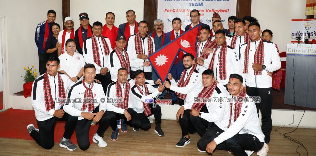 काठमाडौं (हाम्रो खेलकुद) – नेपाल भलिबल संघले किर्गिस्तानको विस्केकमा आयोजना हुन लागेको काभा पुरुष भलिबल नेसन्स लिग खेल्न जाने नेपाली पुरुष राष्ट्रिय भलिबल टोलीलाई बिदाई गरेको छ ।