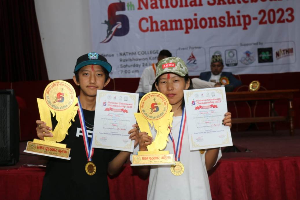 काठमाडौं (हाम्रो खेलकुद) – विजय लिम्बु र समिक्षा राईले छैटौं राष्ट्रिय स्केटबोर्ड प्रतियोगिताको उपाधि जितेका छन् ।