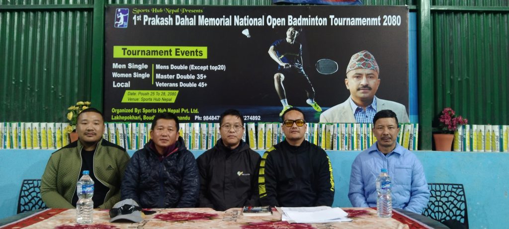 बौद्ध लाखेपोखरीस्थित स्पोर्टस् हव नेपाल प्रालिको आयोजनामा पौष २५ गते देखि हुने ब्याडमिन्टन संघको मान्यता प्राप्त बरियतासहितको राष्ट्रिय प्रतियोगितामा पुरुष एकल, महिला एकल, पुरुष युगल (ब्याडमिन्टन संघको उच्च २० बरियता बाहेक), स्थानिय स्तर, मास्टर्स युगल ३५ बर्ष माथिी र ४५ बर्षमाथि गरि ६ विधामा प्रतिस्पर्धा हुने आयोजक समितिका प्रतियोगिता निर्देशक एवं संयोजक आङ्ग कुसाङ्ग शेर्पाले जानकारी गराए ।