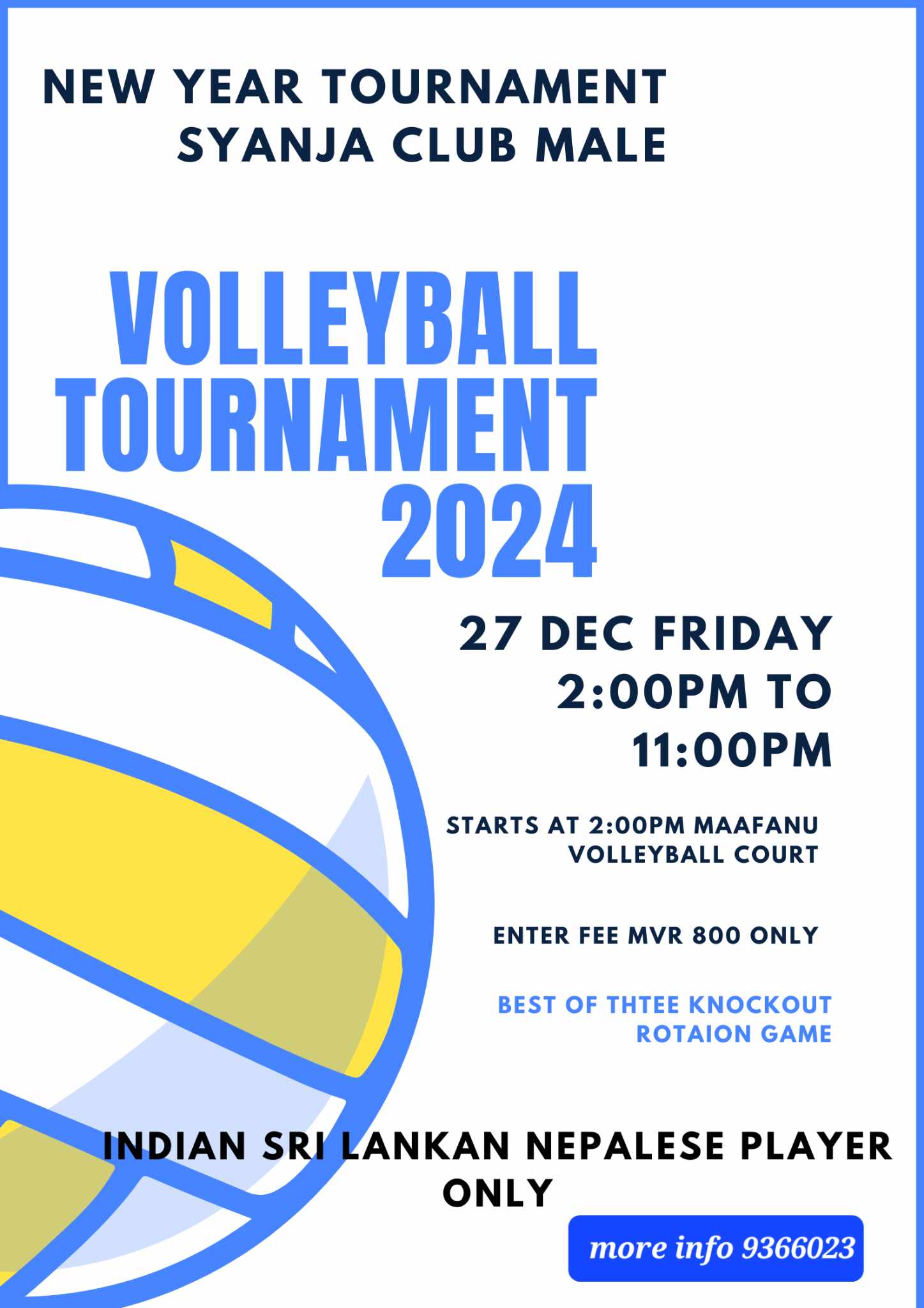 प्रतियोगिता माल्दिभ्सको मालेस्थित माफानु भलिबल कोर्टमा हुनेछ । प्रतियोगितामा सहभागिताको लागि ८ सय माल्दिभियन रुफिया तोकिएको छ । प्रतियोगिता नकआउटको आधारमा बेस्ट अफ थ्री फर्म्याटमा हुने माल्दिभ्सबाट बिकास गुरुङले जानकारी गराए ।
