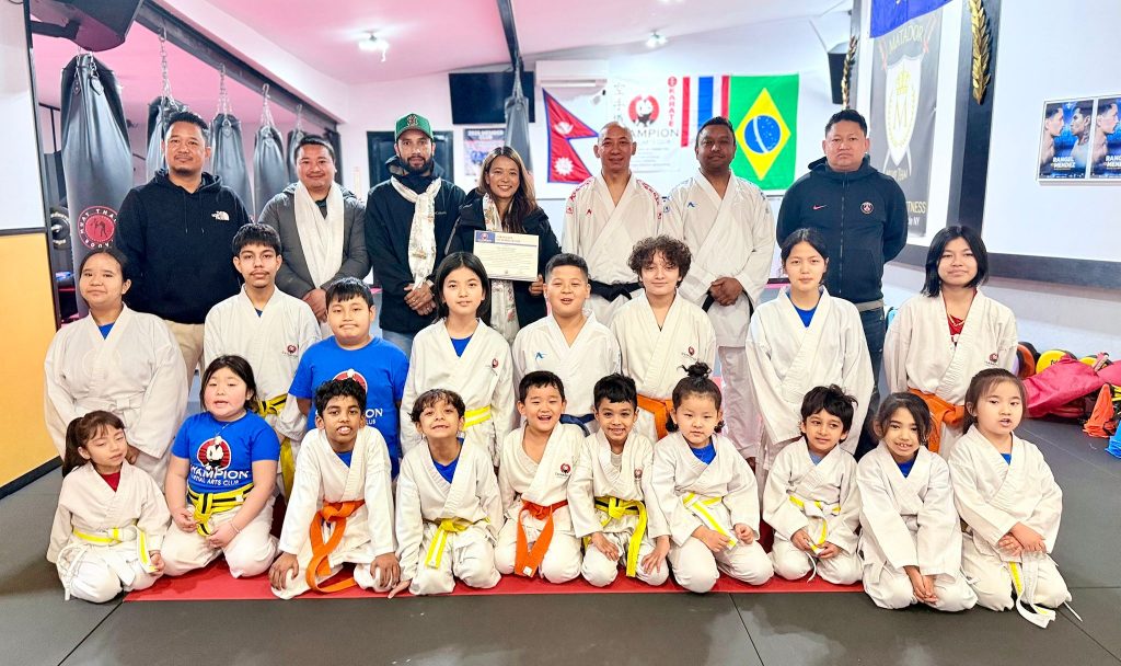 काठमाडौं (हाम्रो खेलकुद) – नेपाली अन्तर्राष्ट्रिय तेक्वान्दो निर्णायक काजल श्रेष्ठ अमेरिकामा सम्मानित भएकी छिन् काजललाई न्युयोर्कमा रहेको च्याम्पियन मार्सल आर्ट्स क्लब युएसएले आफ्नै एकेडेमीमा स्वागत गर्दै नगद र सम्मान पत्रले सम्मानित गरिएको हाे ।
