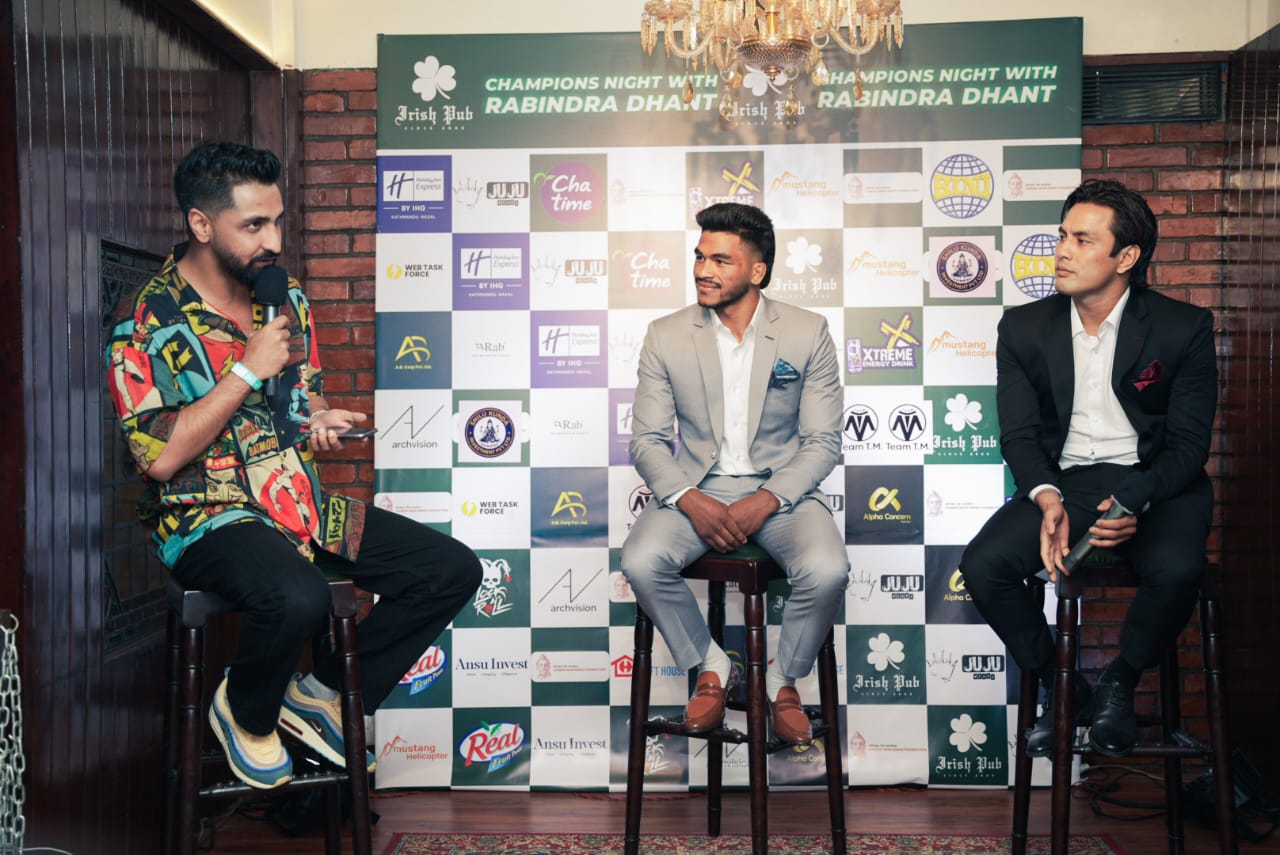 काठमाडौं (हाम्रो खेलकुद)- लाजिम्पाटस्थित आयरिश पबले शनिवार ‘च्याम्पियन्स नाइट’ आयोजना गर्दै भारतीय म्याट्रिक्स फाइट नाइट (एमएफएन) को मुख्य प्रतिस्पर्धाको उपाधि जितेका एमएमए खेलाडी रविन्द्र ढाँटलाई सम्मान गरेको छ।