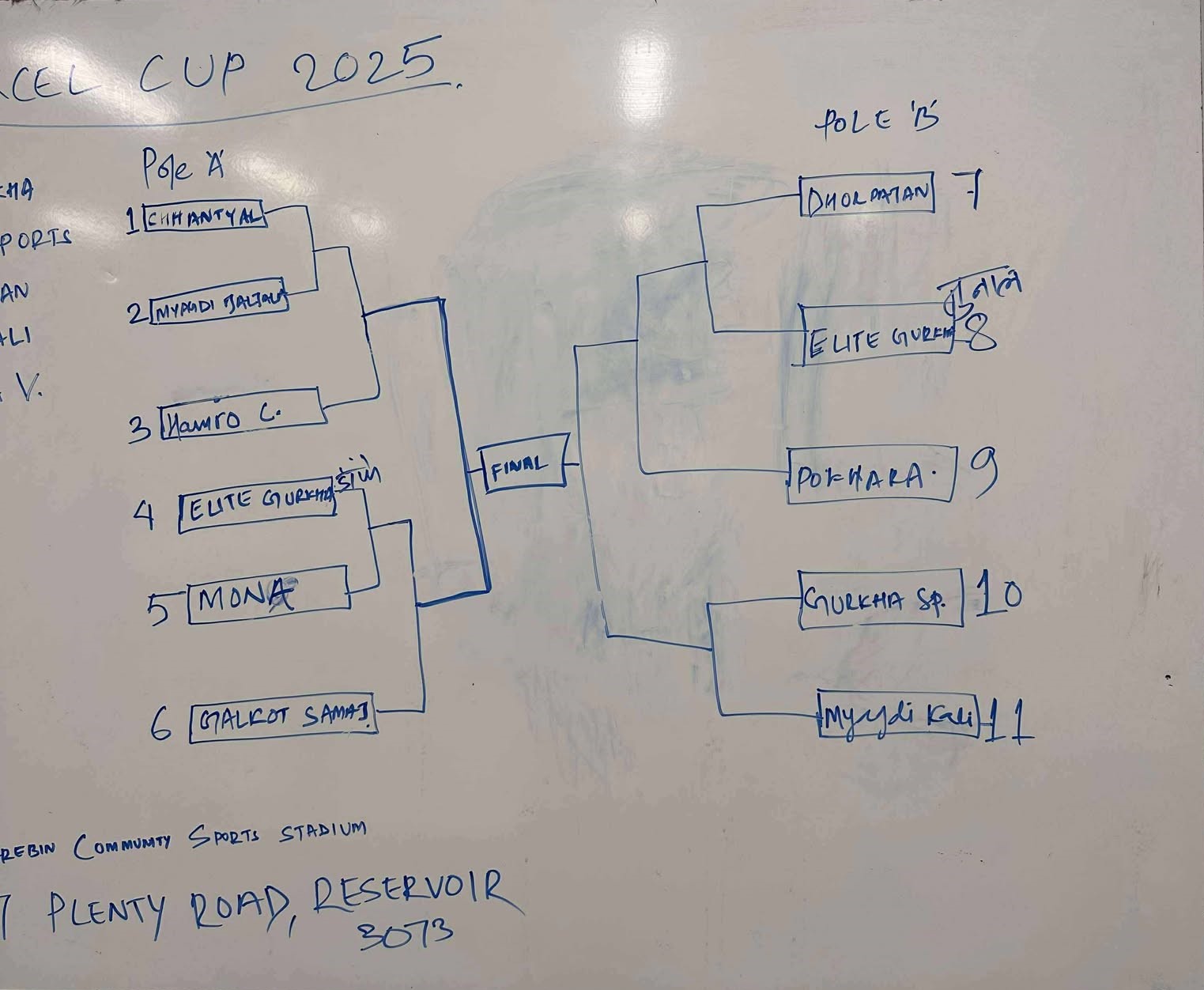 पोल ‘ए’ मा छन्त्याल परिवार अस्ट्रेलिया, म्याग्दी जलजला परिवार अस्ट्रेलिया, हाम्रो सी, आयोजक एलिट गोर्खा डाँफे, मोना अस्ट्रेलिया र गल्कोट समाज अस्ट्रेलिया रहेका छन् ।