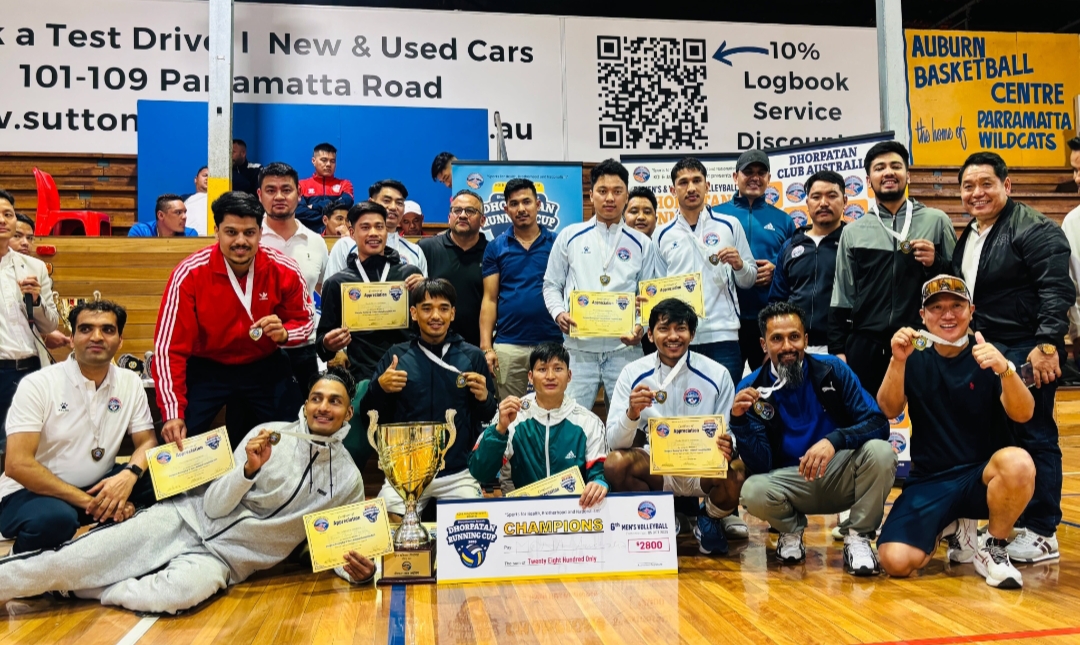 सिड्नी (हाम्रो खेलकुद) – म्याग्दी प्रवासी नेपाली संघ (मोना) र म्याग्दी काली युनाइटेड छैटौं ढोरपाटन रनिङ कप पुरुष तथा महिला भलिबलमा च्याम्पियन बनेका छन् ।