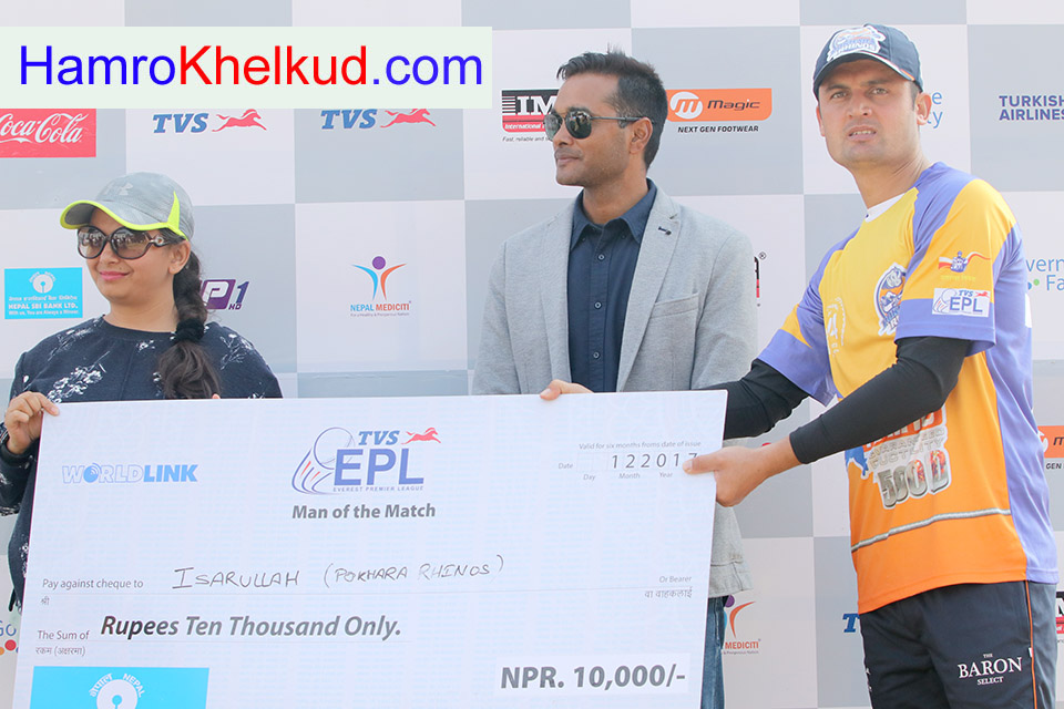 काठमाडौं (हाम्रो खेलकुद ) – टीभिएस एभरेष्ट प्रिमियर लिगको दोस्रो दिन भएका दुई भिन्न खेलहरुमा पोखरा राइनोज र विराटनगर वारियर्सले जित हात पारेका छन् । आज भएको पहिलो खेलमा पोखराले चितवन टाइगर्समाथि १० विकेटको शानदार जित हात पार्यो भने दोस्रो खेलमा विराटनगरले ललितपुर प्याट्रियट्सलाई ६ रनले हराएको हो ।
