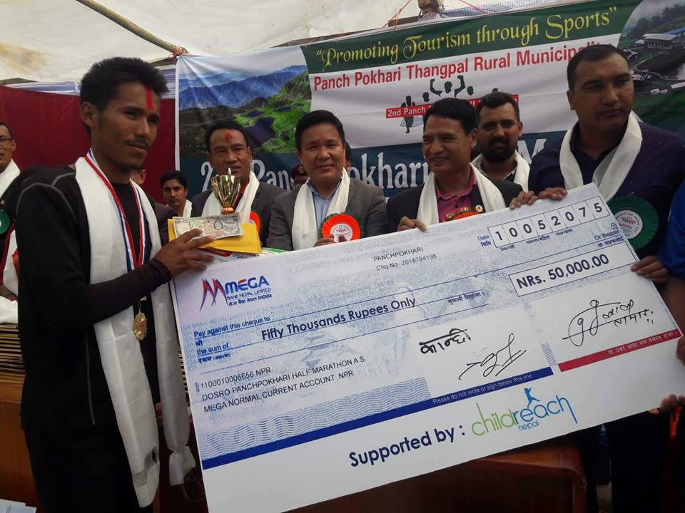 पर्यटकीय नगरी सिन्धुपाल्चोकमा भएको हाफ म्याराथनको पुरुषतर्फ जुम्लाका धिरज बुढाले निर्धारित २४ किलोमिटर दुरी दूरी २ घण्टा ९ मिनेट ५३ सेकेन्डमा पूरा गर्दै उपाधि जितेका हुन् । ओखलढुङगाका सुवास कार्कीले २ घण्टा २४ मिनेट २१ सेकेन्डमा दौड पूरा गर्दै दोस्रो र सोलुका सुमन कुलुङ राईले २ घण्टा २५ मिनेट ४ सेकेन्डमा दौड पूरा गरि तेस्रो स्थान हात पारे ।