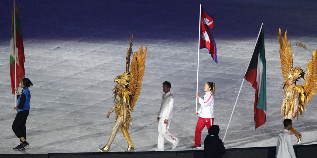 यस्तै सहभागी देशका खेलाडी तथा अफिसियल मार्च पास गरेका थिए। नेपालको तर्फबाट टेबलटेनिस खेलाडी स्वेच्छा नेम्वाङले झन्डा बोकेकी थिइन् । गत १८ अगस्टदेखि आइतबारसम्म इन्डोनेसिया र पालेङबाङमा चलेको एसियाली खेलकुदमा ४५ देशका ११ हजार ३ सय खेलाडीले ४० खेलको ४ सय ५६ स्वर्णका लागि प्रतिस्पर्धा गरेका थिए ।
