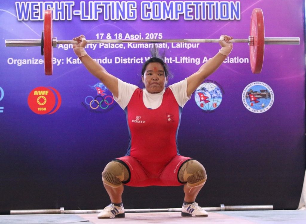 एकल प्रतिस्पर्धा गरेकी उनले स्नाचमा ६८ केजी र क्लिनमा ८५ केजीका साथ १५३ केजी भार बहन गरिन् । ५८ केजी तौलमा सिनियर तर्फ नेपाली सेनाकी कमला श्रेष्ठ र जुनियर तर्फ बाँकेकी कविता चौधरीले स्वर्ण पाए । एकल प्रतिस्पर्धा गरेकी कमलाले स्नाचमा ६५ केजी र क्लिनमा ७५ केजीका साथ कुलमा १४० केजी उचालिन् । यस्तै कविताले स्नाचमा ४२ र क्लिनमा ५६ केजी गरि कुलमा ९८ केजी भार बहन गरिन् । यस्तै ६३ केजीको सिनियर तर्फ सेनाकी सारदा चौधरीले स्वर्ण पाईन् ।