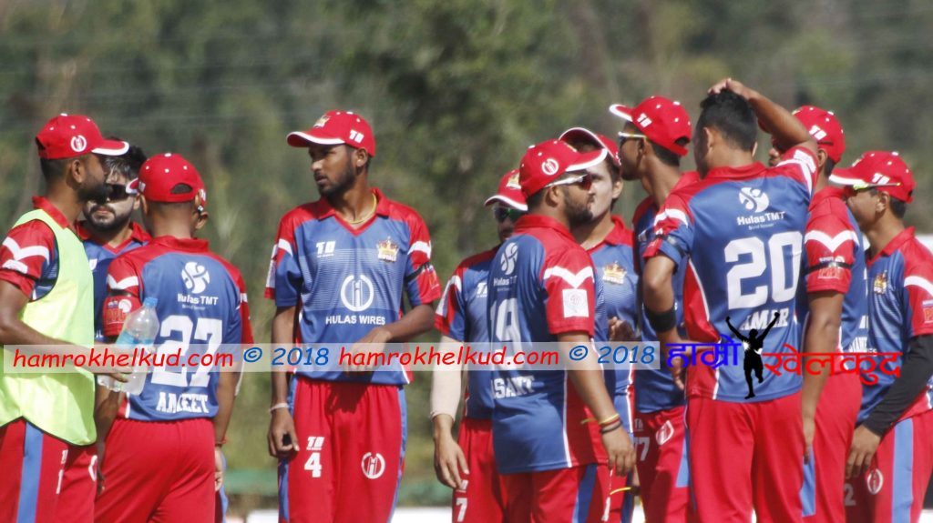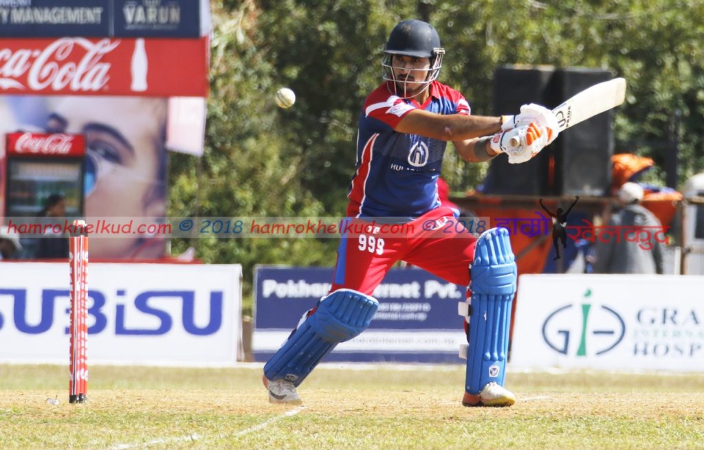 ओपनर अमित श्रेष्ठले ३५ रन जोडे । उनीहरुले दोस्रो विकेटको लागि ६२ रनको साझेदारी गर्दै इनिङ उकासेका थिए । कप्तान ज्ञानेन्द्र मल्ल १७ रनमा आउट भए । नरेश बुढाएर गोल्डेन डगआउट भए । पृथ बाँस्कोटा रनमा नटआउट रहे । अमरसिंह राउटेला रनमा नटआउट रहे । विराटनगरका शाहव आलमले २ विकेट लिए । सन्दीप लामिछाने, किशोर महतो र जितेन्द्र मुखियाले समान १ विकेट लिए ।