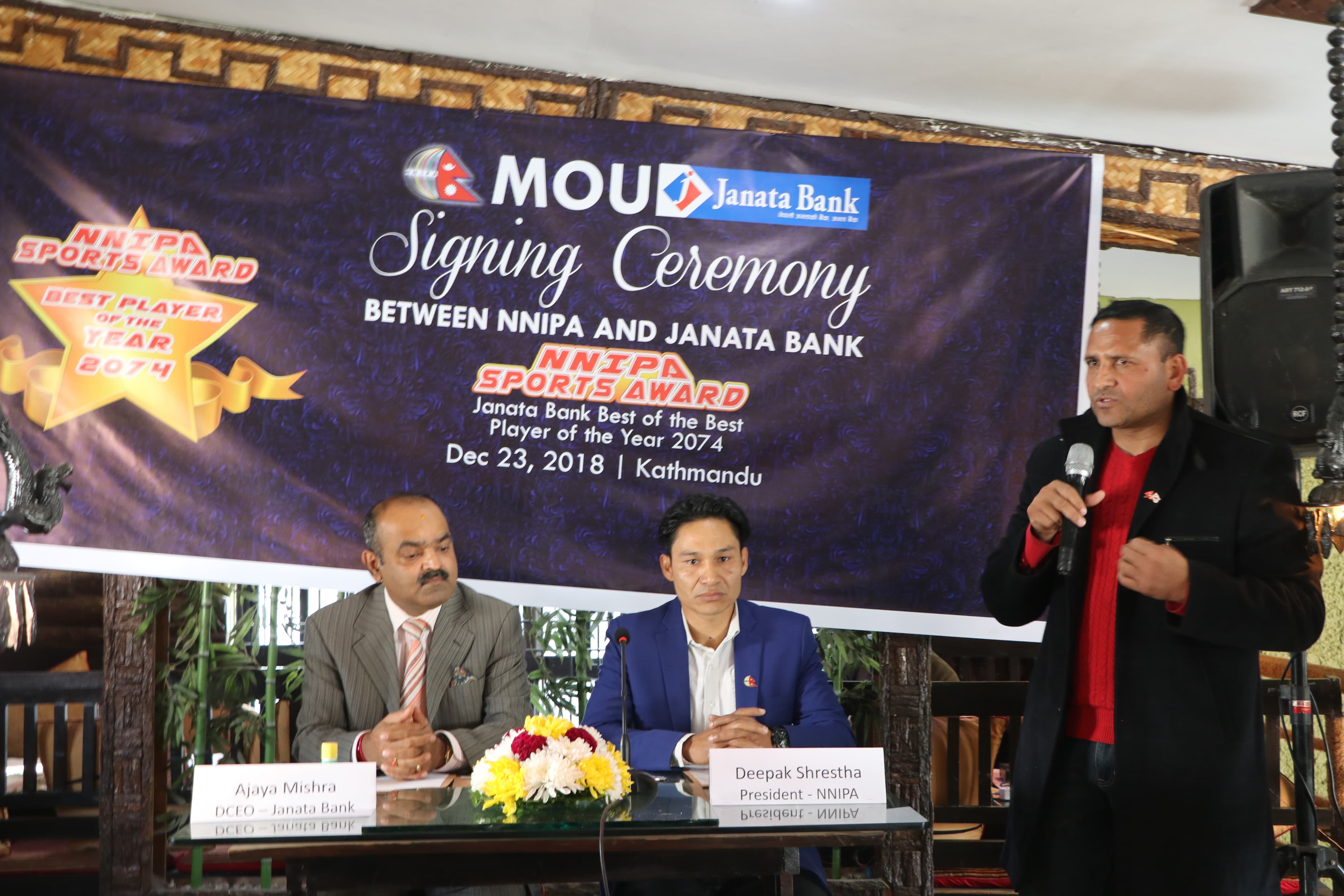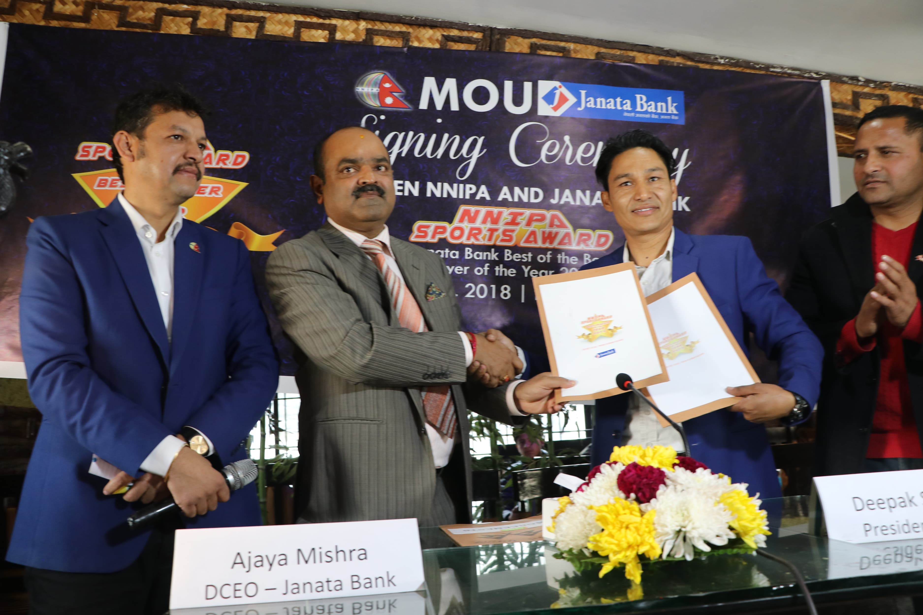 यसका लागि एनएनआइपिएले आइतबारै जनता बैंक लिमिटेडसँग १० लाख रुपैयामा पाँच वर्षे प्रायोजन सम्झौता गरेको छ । वर्षको सर्वाेत्कृष्ट खेलाडीको पुरस्कार रकम जनता बैंकले प्रदान गर्नेछ । यो प्रायोजन रकम जनता बैंकले पाँच वर्षसम्म प्रदान गर्नेछ ।