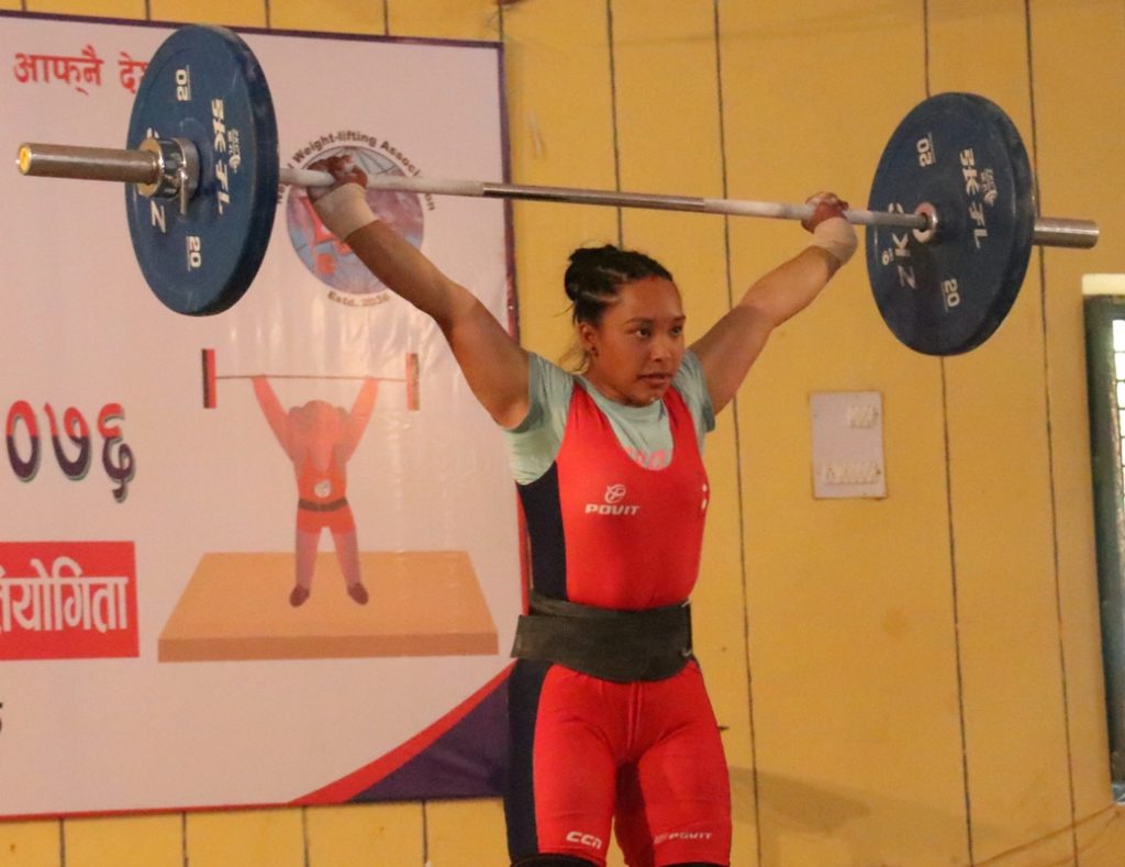 उनले स्न्याचमा ६५, क्लीन एन्ड जर्कमा ८१ तथा कुल १४८ किलो भार बहन गर्दै तीन वटै राष्ट्रिय कीर्तिमान कायम गरेकी हुन् । यसैगरी, तीन वटा राष्ट्रिय कीर्तिमान कायम गर्नेमा पुलिसकै प्रकास केसी र आर्मीकी कमला श्रेष्ठ पनि रहे ।