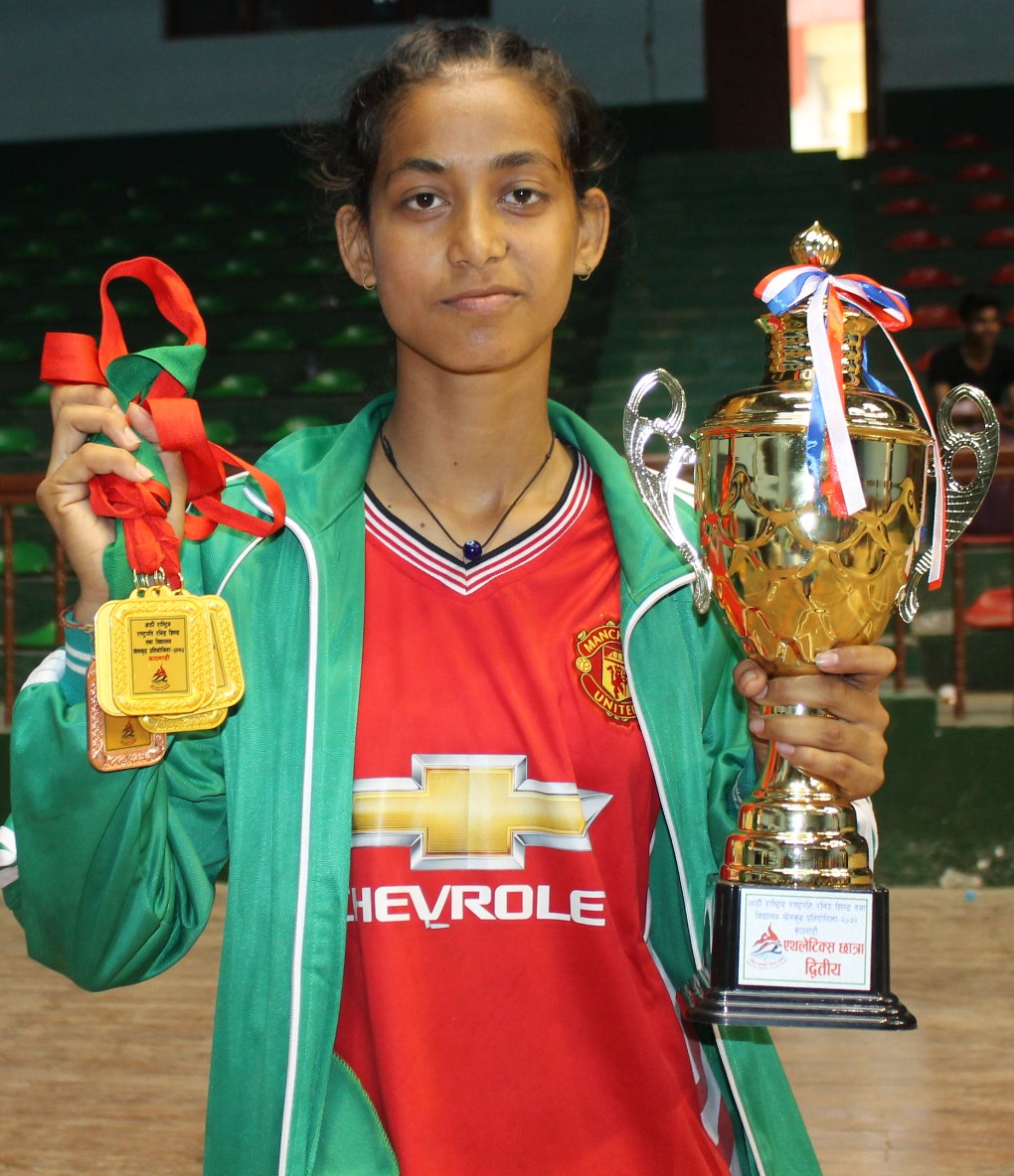युवा तथा खेलकुद खेलकुद मन्त्रालयको तत्वावधानमा राष्ट्रिय खेलकुद परिषद् (राखेप) द्वारा आयोजित प्रतियोगिताको एथलेटिक्सतर्फ छात्रा ट्रिपलजम्पमा १०.५२ मिटर तथा लङजम्पमा ५.०९ मिटर जम्प गर्दै विपना विद्यालयस्तरको राष्ट्रिय कीर्तिमान कायम गरेकी थिइन् । विपनाले ४ गुणा १०० तथा ४ गुणा ४०० मिटर रिलेमा पनि टोलीसंग मिलेर स्वर्ण हात पारिन् । सर्वोत्कृष्ट घोषित भएसंगै खेलकुद मन्त्रालयका सह–सचिव चूढामणि पौडेलले विपनालाई युवा प्रतिभा खेलाडी पुरस्कारबाट सम्मानित गरिने घोषणा गरे । एक लाख राशीको सो पुरस्कार साउनमा हुने कार्यक्रममा प्रदान गरिने छ ।