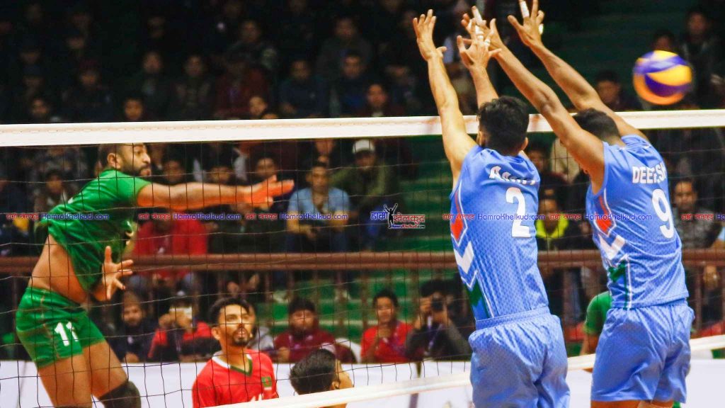 राखेप कभर्डहलमा आइतबार पुरुष भलिबलतर्फको सेमिफाइनल खेल हुनेछ । सेमिफाइनलमा भारत र श्रीलंका तथा पाकिस्तान र बंगलादेशबीच प्रतिस्पर्धा हुनेछ ।