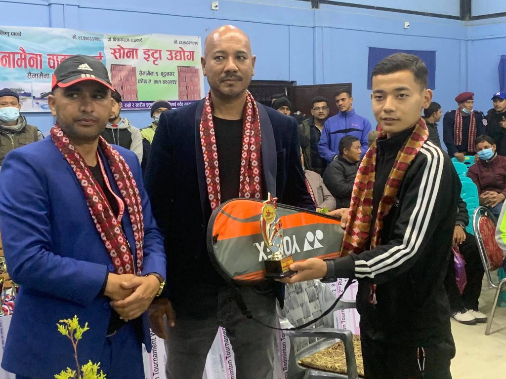 योनेक्सको माभिस–३५० नाइलन सटलकक प्रयोग गरिएको प्रतियोगितामा दाङका हिमांशु कुँवर प्रतियोगिताको उदियमान खेलाडी घोषित भए ।
