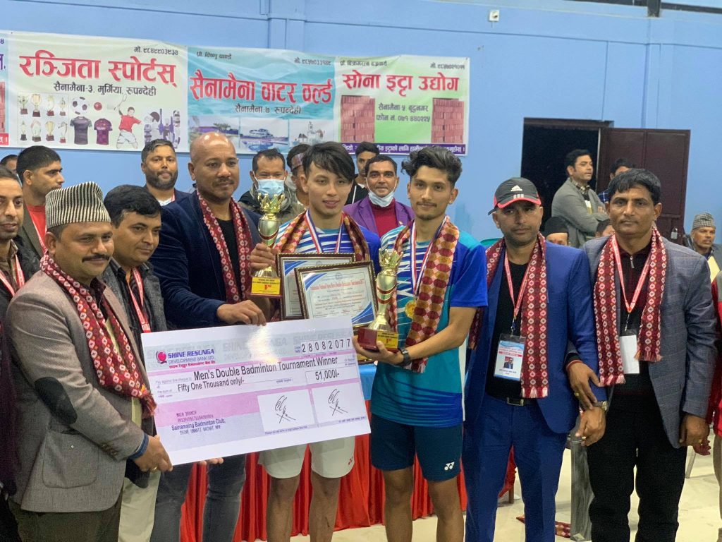 रुपन्देहीस्थित सैनामैना नगरपालिकाको सैनामैना ब्याडमिन्टन क्लबको आयोजनामा भएको प्रतियोगितामा पुरुष डबल्स र भेट्रान्स डबल्स ४५ वर्षमाथि गरी दुई विधामा प्रतिस्पर्धा भएको थियो । दुवै विधामा ३१–३१ जोडीले प्रतिस्पर्धा गरेका थिए ।