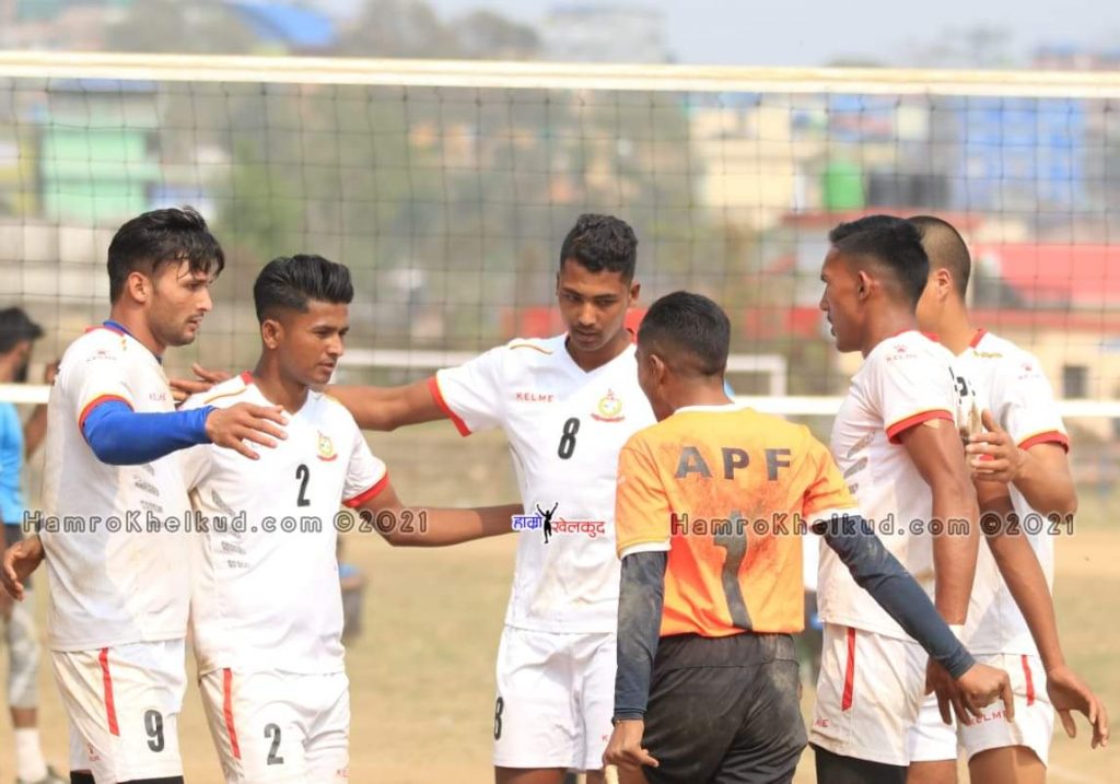 एपिएफले पहिलो खेलमा नेपाल पुलिस क्लबलाई ३-२ को सेटमा पराजित गरेको थियो । समूह ‘बी’ मा एपिएफ २ खेलबाट ५ अंकका साथ शीर्ष स्थानमा रहँदै सेमिफाइनलमा पुगेको हो । पुलिस १ अंकका साथत दोस्रो र दमक अंक विहिन हुँदै पुछारमा छ ।