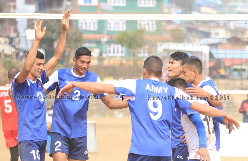 आर्मी समूह ‘ए’ बाट विजेताको रुपमा सेमिफाइनलमा स्थान बनाएको छ । समूह ‘ए’ बाट विमान ट्रेडर्स विर्तामोड समूह उपविजेताको रुपमा सेमिफाइनलमा प्रवेश गरेको छ । गौरादह नगर खेलकुद बिकास समितिले आफ्नो अन्तिम खेलमा वाकओभर दिएपछि आर्मी समूह ए को विजेता बनेको हो । आर्मी ३ खेलमा ३ मा जितसहित ७ अंकका साथ सेटको आधारमा शीर्ष स्थानमा रह्यो ।
