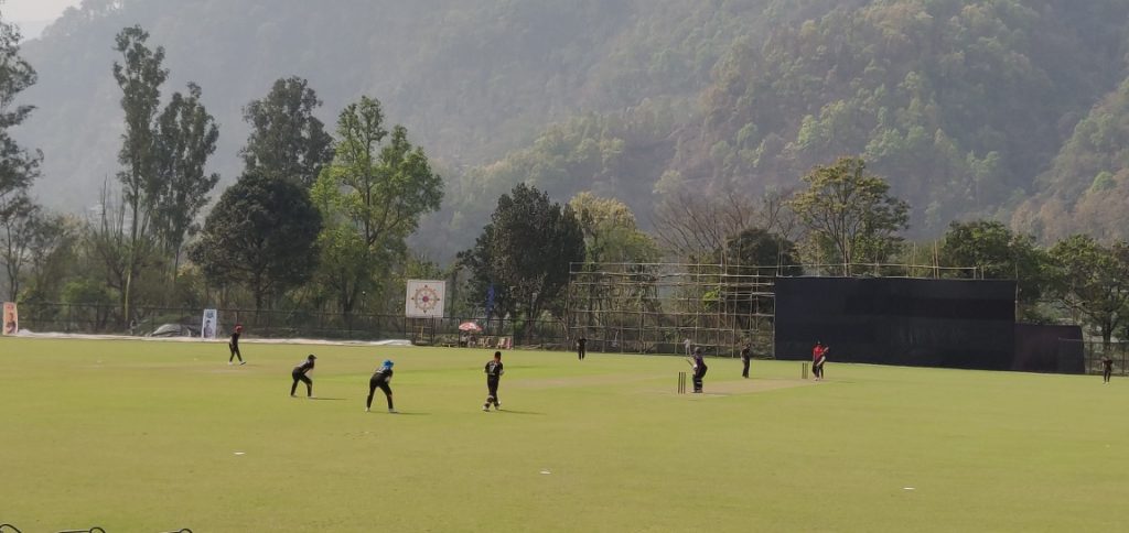 ओपनर शंकर राना ६६ बलमा ८ चौका र २ छक्का सहित ६५ रनमा आउट भए । दीलिप नाथ १२, कप्तान अनिल कुमार शाह १३, सिद्धान्त लोहनी ३२ रनमा आउट भए । सिद्धान्तले २२ बलमा ३ चौका र ३ छक्का प्रहार गरे । प्रेम तामाङ ७ र गुलशन झा १ रनमा आउट भए । अभिनाश कर्ण ५० बलमा ५ चौका सहित ४४ रनमा अविजित रहे । नारचुंग लेप्चाले ८ ओभरमा ३९ रन खर्चेर २ विकेट लिए । मोहम्मद आदिल खान, मनोज शर्मा, निखिल गौतम र नाम हाङ लिम्बो १–१ विकेट लिए ।