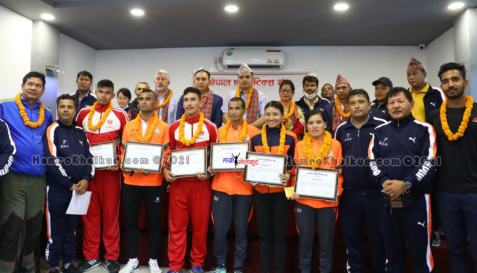 नेपाल एथलेटिक्स संघका अध्यक्ष राजीवविक्रम शाहले सागमा स्वर्ण पदक विजेता खेलाडीलाई व्यक्तिगत रुपमा १ लाख रुपैयाँ पुरस्कार दिने घोषणा गरे बमोजिम खेलाडीलाई पुरस्कृत गरेका हुन् । सागमा नेपालले ३ स्वर्ण, १ रजत र ४ कास्य जितेको थियो । रजत र कास्य जित्ने खेलाडीलाई संघको तर्फबाट सोमबारै सम्मानित गरेको छ ।