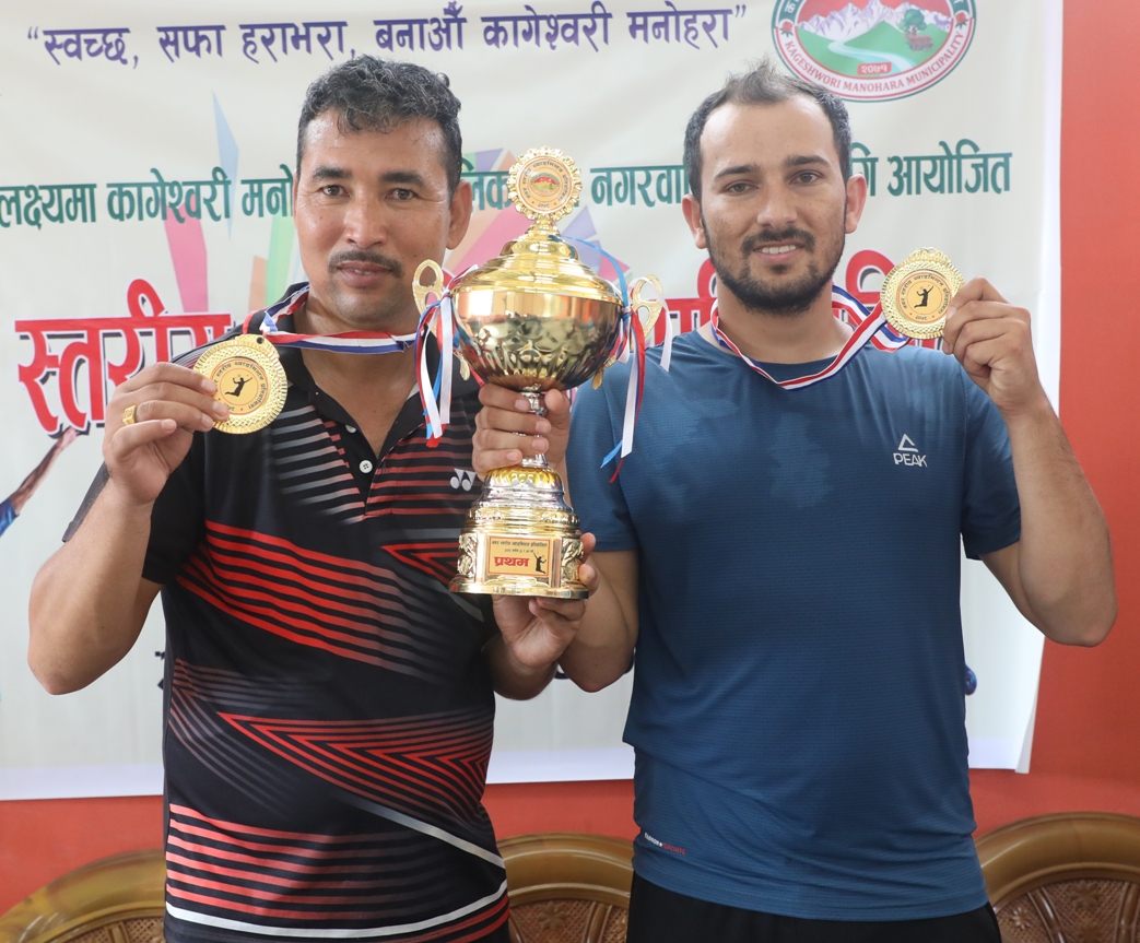 कागेश्वरी मनोहरा नगरपालिकाको आयोजना तथा कागेश्वरी मनाहोरा नगर खेलकुद विकास समितिको तत्वावधानमा भएको प्रतियोगितामा मनोज खड्का र हरि थापा तथा सिद्धार्थ लामा र अजम्बर श्रेष्ठको जोडी तेस्रो भए । शीर्ष तीन स्थान हात पार्नेले क्रमशः १० हजार, ६ हजार र १ हजार नगद पुरस्कार हात पारे ।