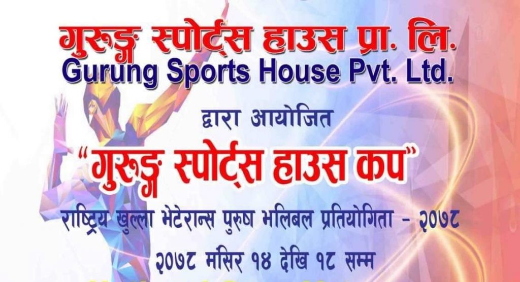 काठमाडौं (हाम्रो खेलकुद) – गुरुङ स्पोर्ट्स हाउस प्रालिको आयोजनामा ‘गुरुङ स्पोर्ट्स हाउस कप राष्ट्रिय भेट्रान्स पुरुष भलिबल’ प्रतियोगिता हुने भएको छ ।