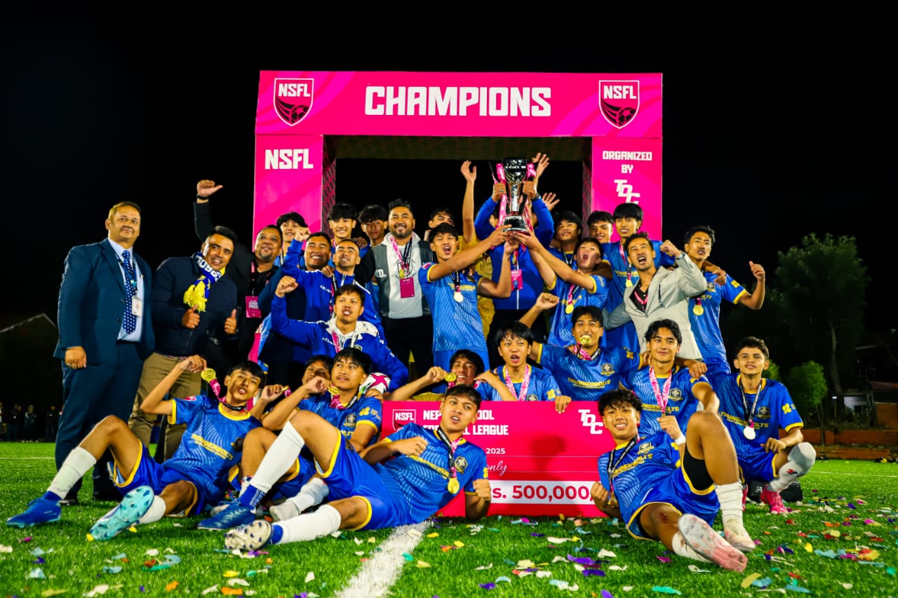 काठमाडौं(हाम्रो खेलकुद) – जेम्स थन्डरबोल्ट्स नेपाल स्कुल फुटबल लिग (एनएसएफएल) को च्याम्पियन बनेको छ । फाइनलमा छिमेकी प्रतिद्वन्द्वी एलए स्नो लिओपर्ड्सलाई पराजित गर्दै थन्डरबोल्ट्सले उपाधिसँगै ५ लाख रुपैयाँ प्राप्त गर्यो । ललितपुरको धापाखेलस्थित जेम्स स्कुलको खेलमैदानमा शनिबार भएको फाइनलमा घरेलु टोली थन्डरबोल्ट्सले एलए स्नो लिओपर्ड्समाथि ४–३ को रोमान्चक जित दर्ता गरेको हो । दोस्रो हाफको […]