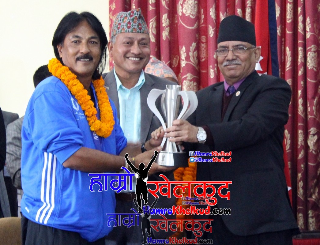 हाम्रो खेलकुद – प्रधानमन्त्री पुष्पकमल दाहाको निजि सचिवालयमा एएफसी सोलिडारिटी कप विजेता राष्ट्रिय फुटबल टोलीलाई आज समम्नित गरियो सोहि कार्यक्रमको फोटो फिचर: