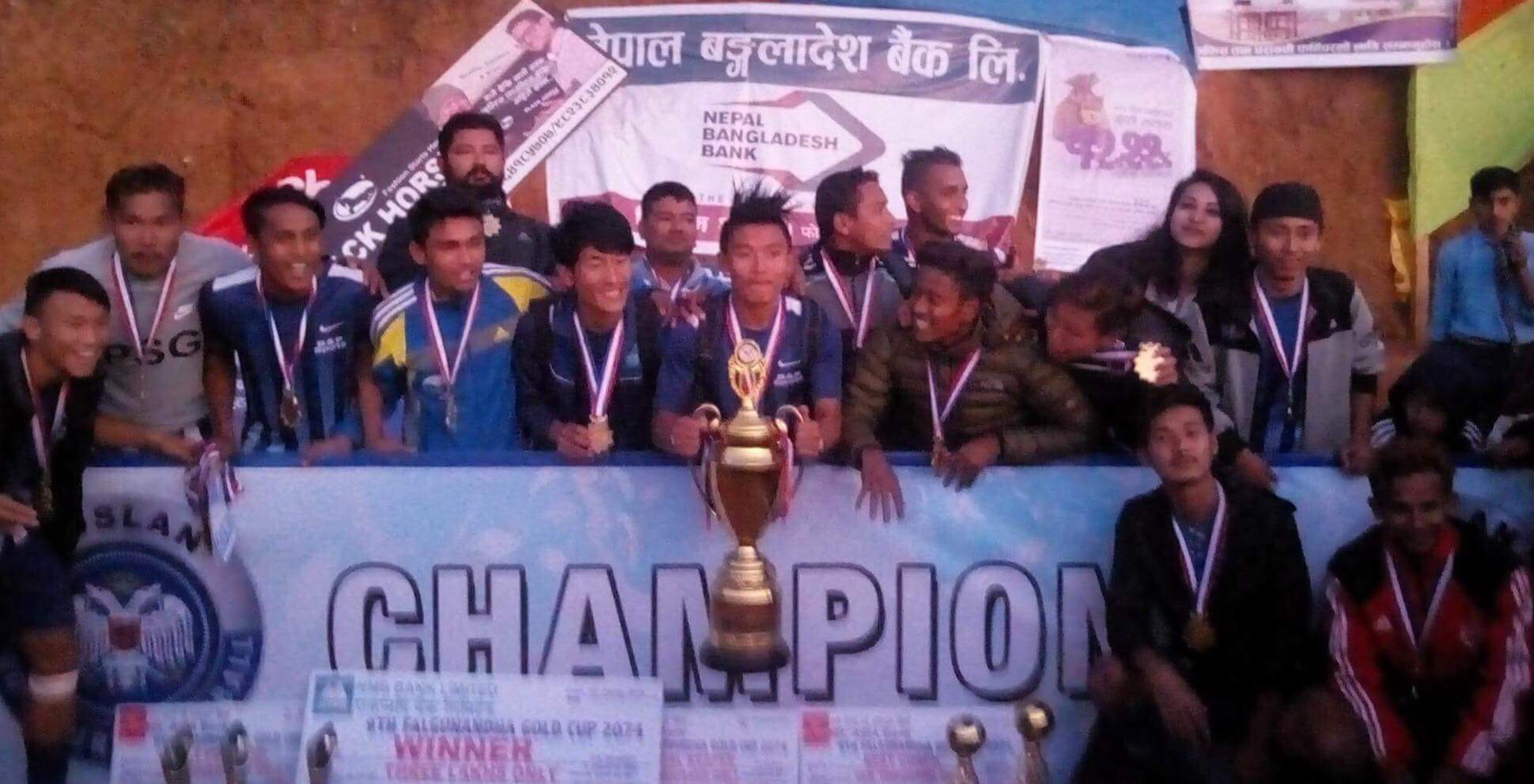 दिपक बोहोरा पाँचथर – सुनसरी ११ ले नवौं रुस्लान फाल्गुनन्द गोल्ड कप फुटबल प्रतियोगिताको उपाधि जितेको छ । मोरङ ११ लाई २–० ले हराउँदै सुनसरी च्याम्पियन बनेको हो । सुनसरीलाई जित दिलाउन तीर्थ बस्नेत र सुरज सुनुवारले गोल गरे । रेफ्रीका रुपमा फिफा रेफ्री लव खत्रीको अन्तिम खेलका रुपमा रहेको फाइनलमा खेलको अन्त्यतिर गोल भएको […]