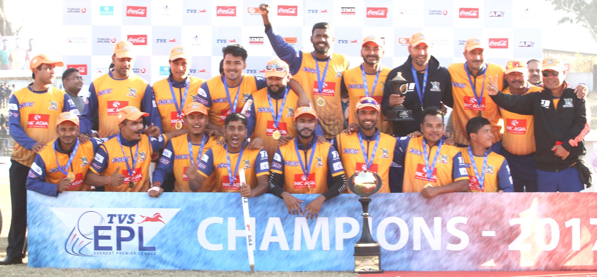 काठमाडौं (हाम्रो खेलकुद) – भैरहवा ग्ल्याडिएटर्सलाई पराजित गर्दै विराटनगर वारियर्स टीभिएस एभरेष्ट प्रिमियर लिग (इपीएल) टी–ट्वान्टी क्रिकेट प्रतियोगिताको च्याम्पियन बनेको छ ।