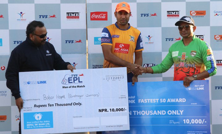 काठमाडौं (हाम्रो खेलकुद) – बाबार हायातले प्रतियोगिताकै छिटो अर्धशतक पुरा गरेपछि विराटनगर वारियर्सले चितवन टाइगर्सलाई जितका लागि १ सय ७५ रनको विजयी लक्ष्य दिएको छ । टीभिएस एभरेष्ट प्रिमियर लिग (इपिएल) टी–ट्वान्टी क्रिकेट प्रतियोगितामा विराटनगरले बनाएको यो प्रतियोगिताको सर्वाधिक रन हो । यसअघि विराटनगरले नै ललितपुरविरुद्ध १ सय ५० रन बनाएको थियो । त्रिवि क्रिकेट […]