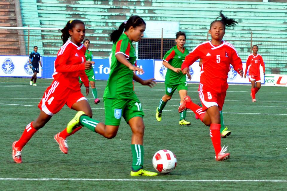 काठमाडौं (हाम्रो खेलकुद)– नेपाली टोलीले हारबाट साफ यु १५ महिला फुटबल प्रतियोगिताको यात्रा सुरु गरेको छ । बंगलादेशको ढाकास्थित वीरश्रेष्ठ शहिद सिपाही मोहम्मद मुस्ताफा कमल रंगशालामा नेपाली टोली आयोजकसँग ६–० को फराकिलो अन्तरमा पराजित भएको छ । तस्बिरहरु: नेपाल खेलकुद पत्रकार मञ्च