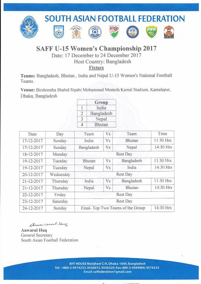 काठमाडौं (हाम्रो खेलकुद) – नेपालले आयोजक बंगलादेशसँग खेल्दै साफ महिला यू १५ फुटबल प्रतियोगिताको सुरुआत गर्ने भएको छ । दक्षिण एसियाली फुटबल महासंघ (साफ) को आयोजनामा हुन लागेको महिला यू–१५ फुटबलको खेल सार्वजनिक हुँदा नेपाल र बंगालदेशबीच डिसेम्बर १७ मा खेल हुने तय भएको छ । ढाकास्थित वीरश्रेष्ठ शहिद सिपाही मोहम्मद मुस्ताफा कमल स्टेडियम […]