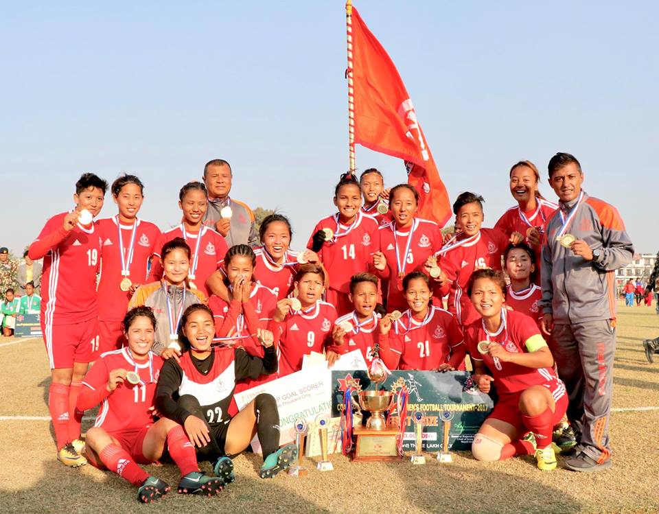 काठमाडौं (हाम्रो खेलकुद)– विभागिय टोली नेपाल एपिएफ क्लबले प्रधान सेनापति पाँचौं अन्तर्राष्ट्रिय महिला फुटबल प्रतियोगिताको उपाधि जितेको छ । आयोजक समेत रहेको अर्को विभागिय टोली त्रिभुवन आर्मी क्लबलाई आज ३–२ ले हराउँदै एपिएफले उपाधि जितेको हो । सावित्रा भण्डारीको गोलबाट दोस्रो मिनेटमै एपिएफले अग्रता लिएको थियो । ३२ औं मिनेटमा सपना लामाले गोल गर्दै आर्मीलाई […]