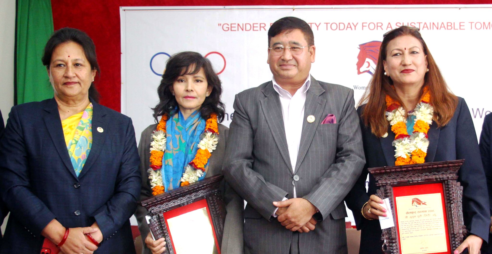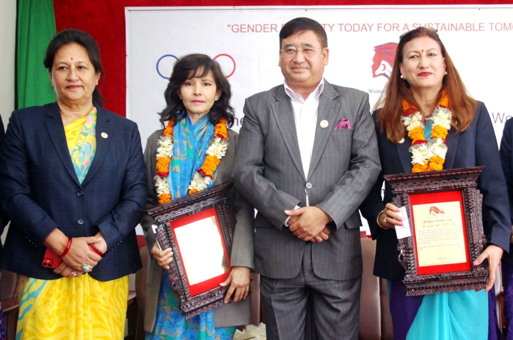 काठमाडौं (हाम्रो खेलकुद) – अन्तर्राष्ट्रिय नारी दिवसको अवसरमा खेलकुदसँग सरोकारवाला दुई महिला सम्मानित भएका छन् । नेपाल ओलम्पिक कमिटीअन्तर्गतको वुमेन्स एन्ड स्पोर्टस कमिसनले तेक्वान्दोकी पुरानो खेलाडी डाक्टर सुधा सेन मल्ल र राष्ट्रिय खेलकुद परिषद् (राखेप) की कर्मचराी जुलुम गिरीलाई नगदसहित स्मान गरेको हो ।