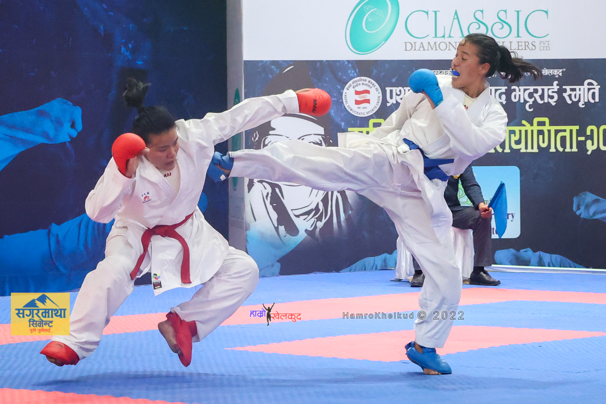 काठमाडौं (हाम्रो खेलकुद) – १३ औं दक्षिण एसियाली खेलकुद (साग) की स्वर्ण पदक विजेता एपिएफकी अनुपमा मगरले प्रथम कृष्णप्रसाद भट्टराई स्मृति राष्ट्रिय कराते प्रतियोगिताको महिला ६८ केजी माथिको तौल समूहमा स्वर्ण पदक जितेकी छन् ।