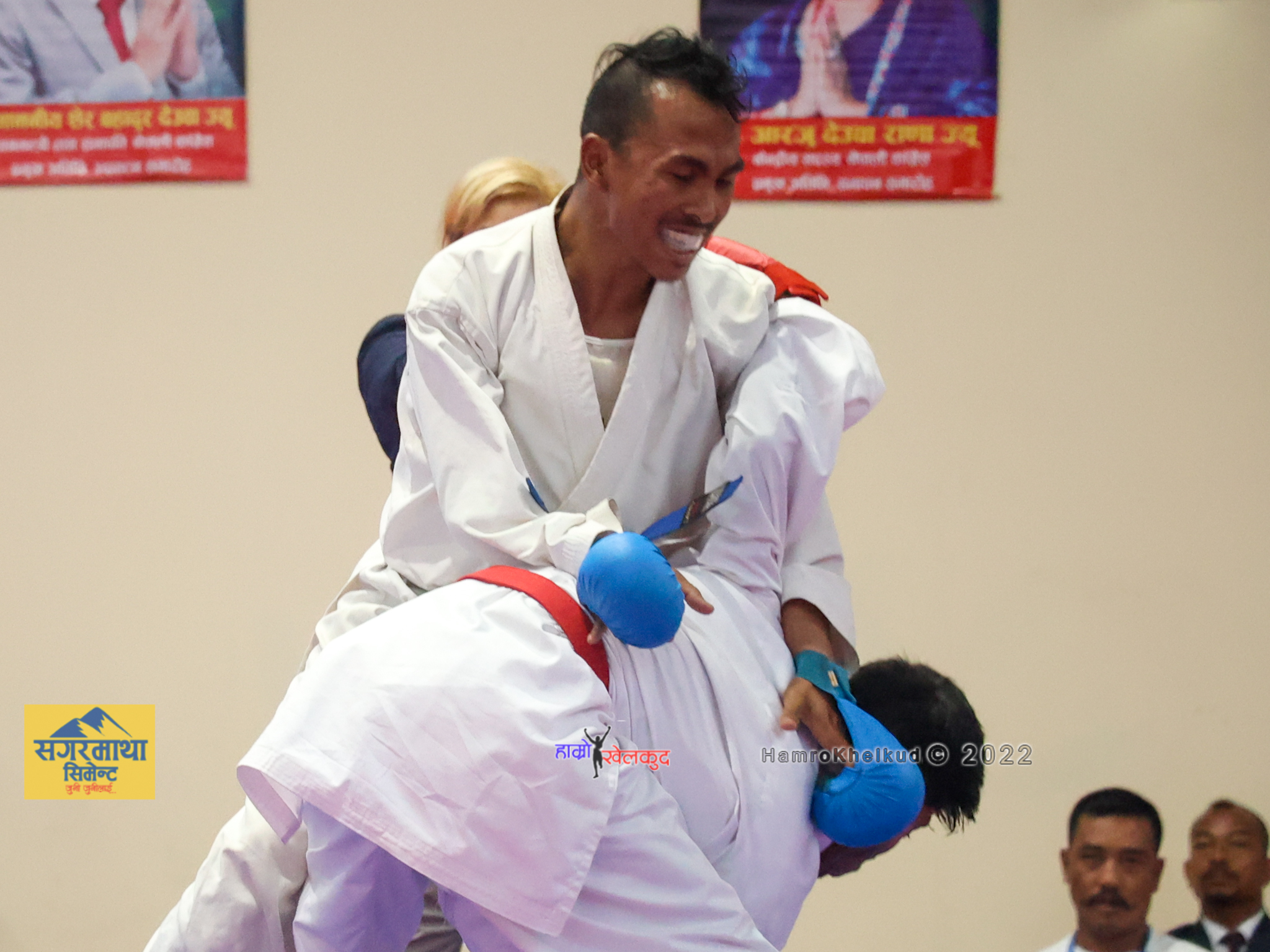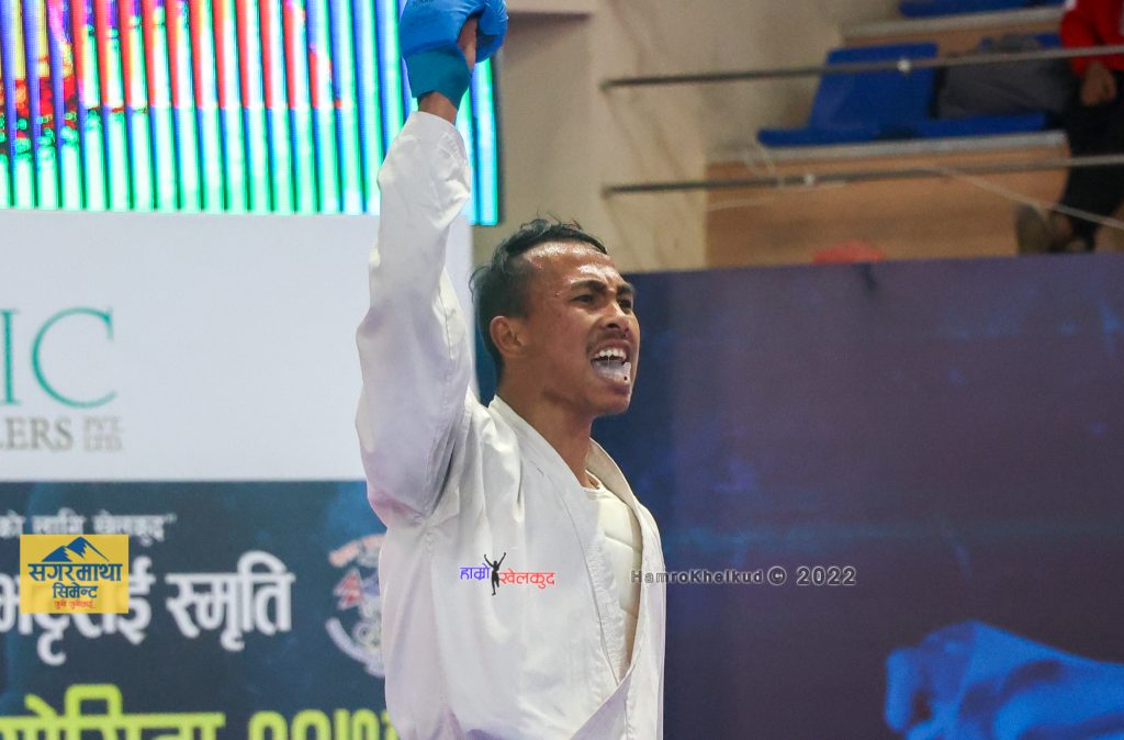 ललितपुर सातदोबाटोस्थित कराते हलमा जारी प्रतियोगिताको दोस्रो दिन शुक्रबार विभागिय टोलीको दबदबाकाबीच सन्तोषले बागमतीका लागि पहिलो स्वर्ण पदक जितेका हुन् । सन्तोषले फाइनलमा सुदूरपश्चिमका रोशन भाटलाई १०–२ ले हराएका हुन् ।