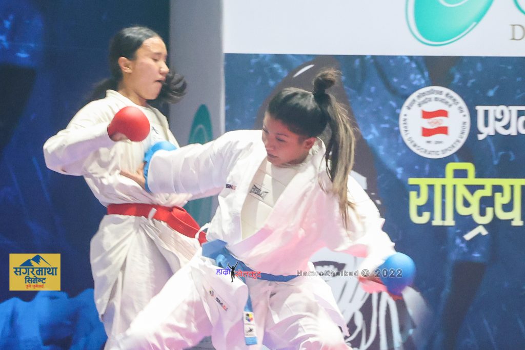 काठमाडौं (हाम्रो खेलकुद)– त्रिभुवन आर्मी क्लबकी निरुपा तामाङले प्रथम कृष्णप्रसाद भट्टराई स्मृति राष्ट्रिय कराते प्रतियोगिताको महिला ६८ केजीमाथिको तौल समूहमा स्वर्ण पदक जितेकी छन् । सो तौल समूहमा १३ औं दक्षिण एसियाली खेलकुद (साग) की स्वर्ण पदक विजेता सुनिता महर्जन भने सेमिफाइनलमा पराजित भएकी छन् ।