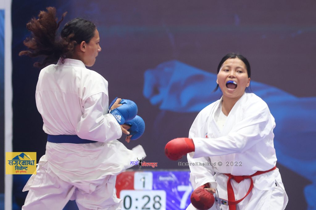 ललितपुर सातदोबाटोस्थित कराते हलमा जारी प्रतियोगिताको तेस्रो तथा अन्तिम दिन शनिबार सेमिफाइनलमा एस्तरले बागमती प्रदेशकी रमिता माझीलाई १५–७ र शान्ताले मधेश प्रदेशकी सविना मगरलाई ३–२ ले हराउँदै एकअर्कासँगको भेट पक्का गरेका हुन् । इस्तर र शान्ता दुवै अन्तिम १६ बाट अघि बढेका थिए ।