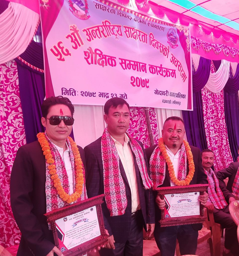 ५६ औं अन्तर्राष्ट्रिय साक्षरता दिवसको अवसर पारेर गोदावरीले बिहीबार आफ्ना नगरवासी पिएचडी गर्ने, एइइमा राम्रो नतिजा ल्याउने स्कुल र खेलकुदमार्फत योगदान पुर्याउनेलाई सम्मान गरेको थियो । श्रेष्ठ र महर्जन पनि सोही अवसरमा सम्मानति भएका थिए ।