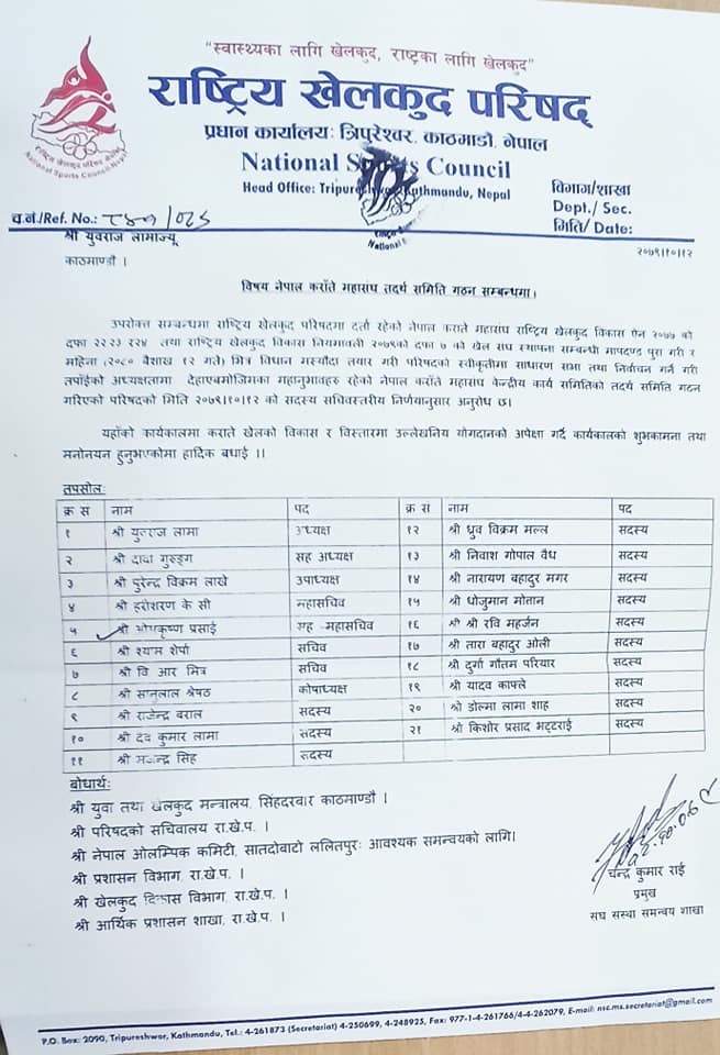 पहिलो पुस्ताका कराते खेलाडी समेत रहेका लामाको नेतृत्वमा पूर्नगठित महासंघलाई ९० दिन (२०८० वैशाख १२ गते) भित्र विधान मस्यौदा तयार ग।िर राखेपको स्वीकृतीमा साधारण सभा तथा निर्वाचन गर्ने जिम्मेवारी सम्पेको छ ।
