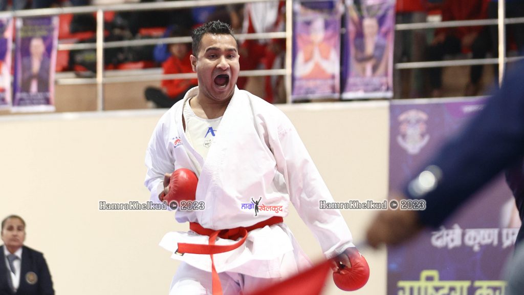 ललितपुर (हाम्रो खेलकुद)– तीन वर्ष अघि स्वदेशमा आयोजना भएको १३ औं दक्षिण एसियाली खेलकुद (साग) मा स्वर्ण पदक जितेका विप्लवलाल श्रेष्ठ दोस्रो कृष्णप्रसाद भट्टराई स्मृति राष्ट्रिय कराते प्रतियोगितामा ८४ केजी माथिको तौल समूहमा विजयी भएका छन् ।