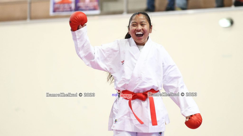 ललितपुर सातदोबाटोस्थित कराते एकेडेमीको हलमा जारी प्रतियोगिताको दोस्रो दिन शुक्रबार फाइनलमा एपिएफका रमिता माझीलाई १–० ले हराउँदै सोनीले स्वर्ण पदक जितेकी हुन् । त्यसअघि सेमिफाइनलमा सोनीले त्रिभुवन आर्मी क्लबकी सानुमाया थिङलाई ९–५ ले र रमिताले मधेश प्रदेशकी खुस्बु खड्कालाई ७–४ ले हराउँदै स्वर्ण पदकका लागि प्रतिस्पर्धा पक्का गरेका थिए । सानुमाया र खुस्बुे कास्य पदक प्राप्त गरे । सो इभेन्टमा १० खेलाडीले प्रतिस्पर्धा गरेका थिए ।