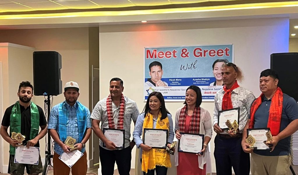 टेक्सस/अमेरिका (हाम्रो खेलकुद)- नेपाली समाज टेक्सस र सुदुर पश्चिम नेपाली समाज, टेक्ससले एसियन खेलकुदमा दुई कास्य पदक तथा साग खेलकुदमा चार स्वर्णपदक विजेता ओलम्पियन दीपक विष्ट र एसियन खेलकुदमा एक कास्य पदक तथा साग खेलकुदमा तीन स्वर्ण पदक विजेता आयशा शाक्यलाई एक कार्यक्रममा बीच सम्मान गरेको छ ।