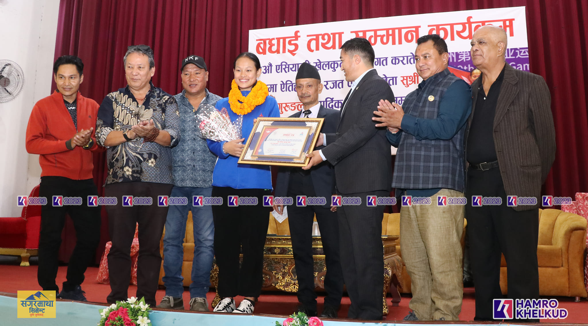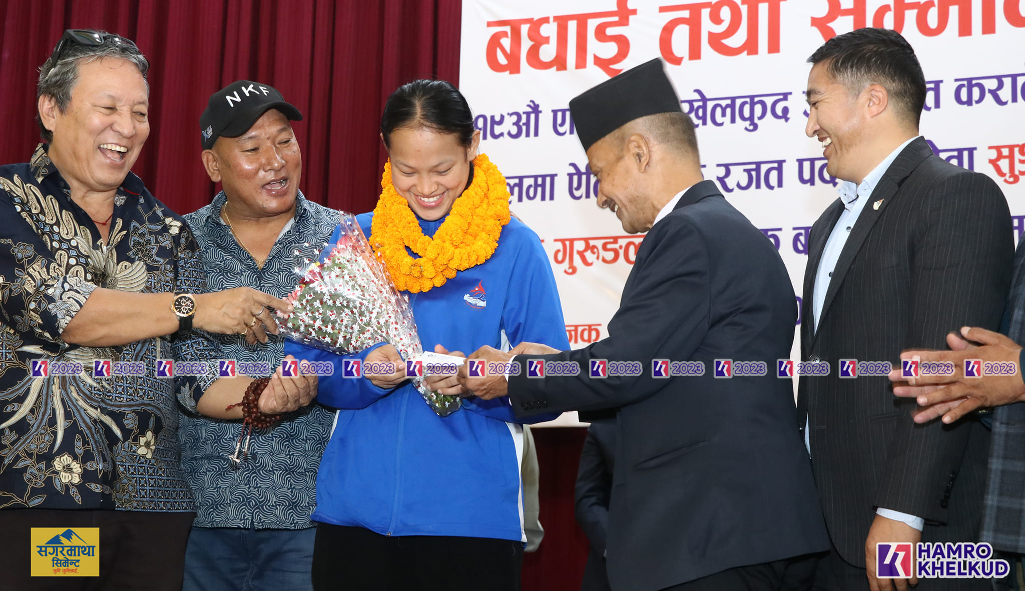 राखेप सदस्य–सचिव घिसिङले यो सम्मान सुरुआत मात्र भएको बताउदै सरकारले दिने नगद पुरस्कार पनि छिट्टै प्रदान गर्ने प्रतिबद्धता जनाए । ‘आजको यो सम्मान सुरुआत मात्र हो । व्यवस्थापकबाटै सुरुआत भएको छ । यसलाई शुभ मान्नु पर्छ । एसियाडमा रजत जित्ने खेलाडीलाई कानूनमा व्यवस्था भए बमोजिमको १९ लाख ५० हजार नगद पुरस्कार पनि सरकारबाट छिट्टै एरिकाले पाउनु हुनेछ ’ सदस्य–सचिव घिसिङले भने, ‘पुरस्कारले खेलाडीलाई उर्जा त थप्छ नै । खेलाडीले पुरस्कारलाई उर्जाका साथै जिम्मेवारी पनि थपिएको छ भन्ने महसुस गर्नु पर्छ ।’
