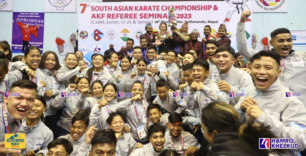 काठमाडौं (हाम्रो खेलकुद) – नेपाल सातौं दक्षिण एसियाली कराते च्याम्पिनसिपमा टिम च्याम्पियन बनेको छ।