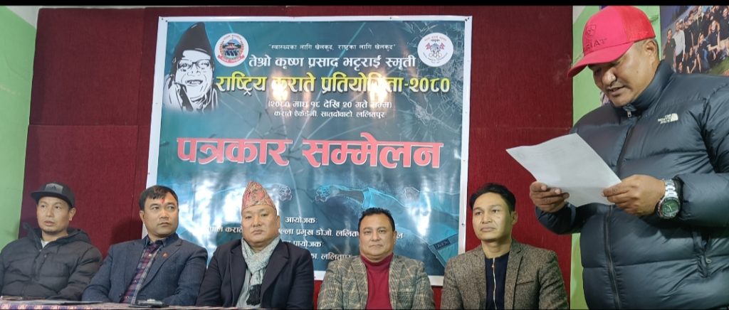 जिल्ला प्रमुख डोजो ललितपुर, लगनखेलको आयोजनामा माघ १८ देखि २० गतेसम्म कराते प्रतियोगिता हुने मंगलबार पत्रकार सम्मेलनमा जानकारी दिइयो।
