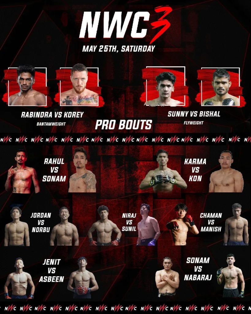एनडब्लुए ३ अन्तर्गत यस प्रतिस्पर्धा बाहेक अन्य ६ बाउटहरु पनि हुँदैछन् । सह-मुख्य बाउटमा नेपालकै सन्नी खत्री र भारतीय विशाल साहु प्रतिस्पर्धा गर्ने छन् । यसबाहेकका ५ प्रतिस्पर्धा भने एमेच्योर रहने छन् ।